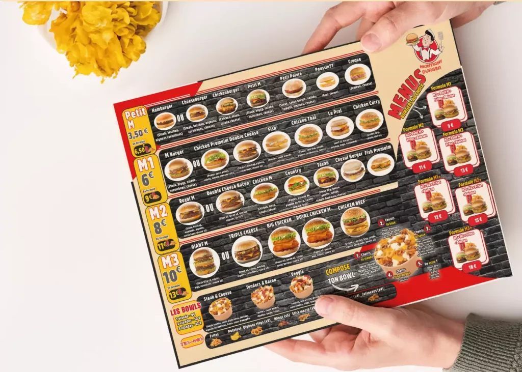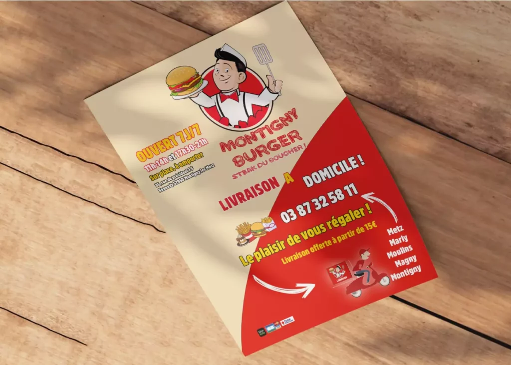 Montigny Burger est un restaurant à Montigny-lès-Metz qui m’a sollicité durant un stage pour créer le branding de son nouveau restaurant. Il souhaitait une carte de menu, un logo et une identité visuelle propre à l’image de son restaurant.